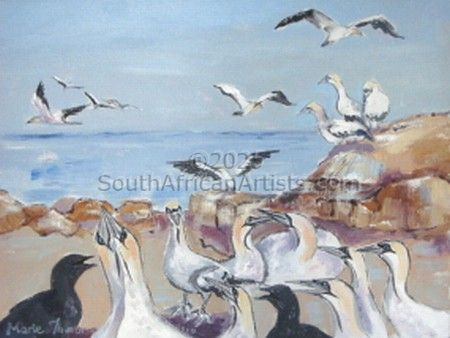 South African Marie Theron (b. 1944) was trained as an Art Teacher. She has held solo exhibitions both locally and overseas and has participated in exclusive group exhibitions. Investors in her oil and acrylic works range from foreign embassies, corporate offices, guesthouses, libraries, hospitals and international private collectors. Her work has sold in Australia, Britain, Canada, Croatia, Ireland, Hungary, the Netherlands, Germany, Austria and the USA (more than 30 paintings in America) She was commissioned by the Ass of Arts Pretoria, the Croatian Embassy and Academia Cravatica in Zagreb to submit a painting "Sister Power" for "The Challenge of the Tie", a world-touring permanent exhibition which toured Pretoria, Johannesburg, Brussels, Prague and Brazilia in 2005 and further around the globe in 2006.