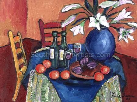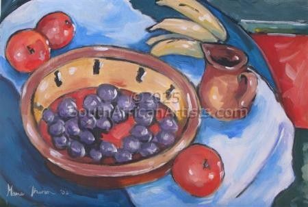 South African Marie Theron (b. 1944) was trained as an Art Teacher. She has held solo exhibitions both locally and overseas and has participated in exclusive group exhibitions. Investors in her oil and acrylic works range from foreign embassies, corporate offices, guesthouses, libraries, hospitals and international private collectors. Her work has sold in Australia, Britain, Canada, Croatia, Ireland, Hungary, the Netherlands, Germany, Austria and the USA (more than 30 paintings in America) She was commissioned by the Ass of Arts Pretoria, the Croatian Embassy and Academia Cravatica in Zagreb to submit a painting "Sister Power" for "The Challenge of the Tie", a world-touring permanent exhibition which toured Pretoria, Johannesburg, Brussels, Prague and Brazilia in 2005 and further around the globe in 2006.