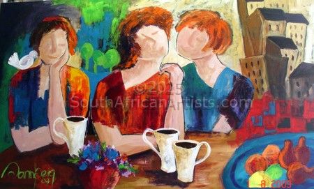 Two solo exhibitions and several other exhibitions. Three exhibitions were with Father Frans Claerhout in Tweespruit, Free State. Sann has open her own gallery in Ladybrand where among her own work she also exhibit other soul mate artist works