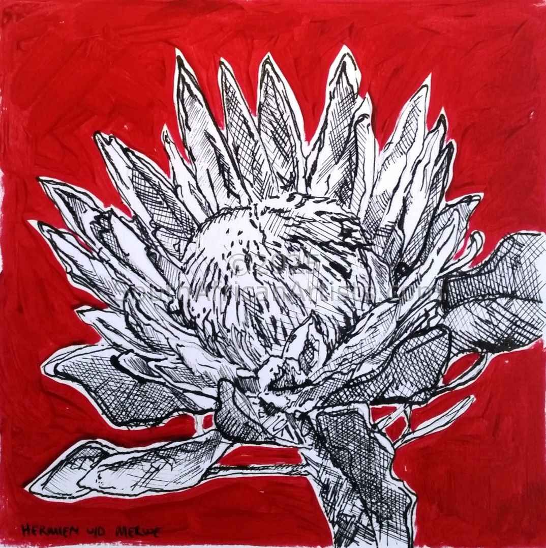 I love to use Cape Fynbos as theme in my art. Since I have been living in Cape Town, this focus has intensified for me. Here I am at the center of what a city can offer - but closer to Nature than ever before. The majestic Table Mountain and the blue-green sea are always visible and always beautiful, simultaneously unchanging in their presence and ever-changing their display. I often walk on the Fynbos- rich mountain paths. I see which flowers open, as the months and seasons change. I smell the field and feel the sea air against my skin. I see the colours of the large salty water mass change - almost by the hour. I pause at interesting leaves and cones - feeling the textures and taking this in with all my senses. This is probably why the consuming veld fires against Table Mountain, touch me so deeply - flames creeping forward, driven by strong winds. I realize that it is the precious, endangered Fynbos plants that burns - the subject of my art making. Regular rains prevent excessive veld fires and the Fynbos plants are very dependent on this for their survival. From there the golden thread though my artmaking: Fire and Rain. While I am making art, I always listen to the still voice within me to search deeper - to find the Spiritual meaning in the subjects I love and to whisper that into my art. As the Fynbos seeds need to be scorched by natural fires from time to time to distribute seeds and ensure new growth in the next season - we also need to be purified by God's fire to become the person that He intended us to be - to flower for Him. And as the Fynbos plants need regular rains, we too need living water to quench our Spiritual thirst. I work in a large variety of art mediums: Oil paintings; Linotypes; Monotypes; Pen-and-Ink drawings and Mixed media artworks. I often weave words into my works - sometimes hidden to the naked eye: Thoughts of hope and light.