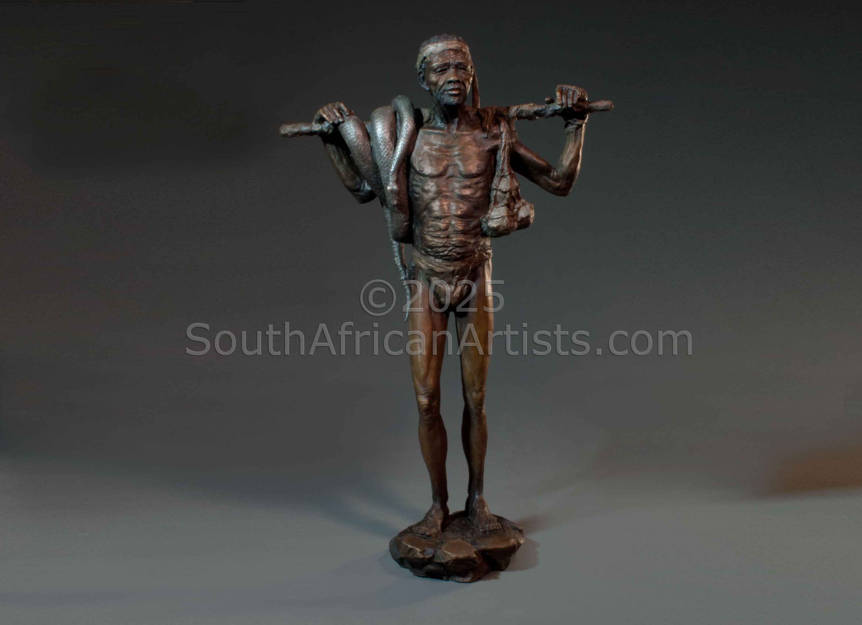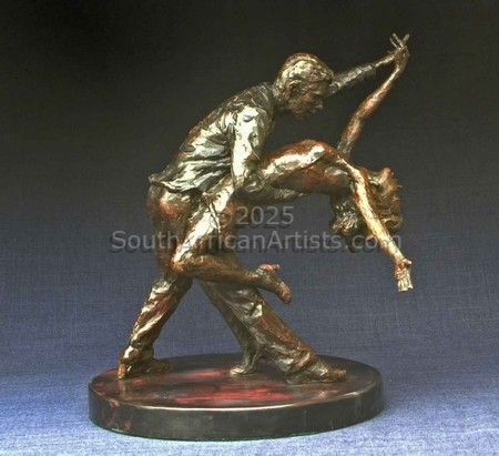 His works, of limited additions are sought after by collectors who identify with conservation, wildlife, African ethnic themes and the vanishing cultures of Southern Africa.. He works in oils, acrylic paintings and bronze. His style of painting and sculpting is best described as representational. His main medium for sculpting is bronze, which is the most difficult and time consuming but does not delegate any of the work except for the foundry process. He believes this a delicate and complicated process, which should only be done by suitably skilled and qualified people with the best equipment available He has participated in many group exhibitions at the Crake Gallery in Norwood and also at the Everard Reed Gallery in Cape Town. Other galleries that carry his work are the David Thorpe Fine Art Gallery in Plettenberg Bay, The Cape Gallery in Cape Town and St Johns Art Gallery in Douglas on the Isle of Man.
