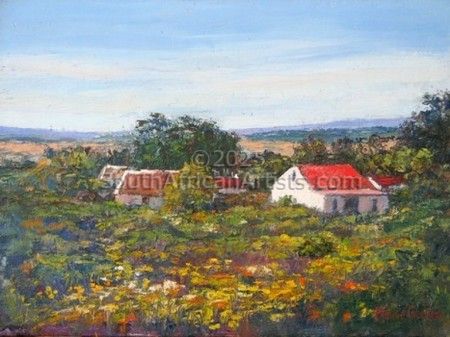 "Red Roofs and Veld Flowers"