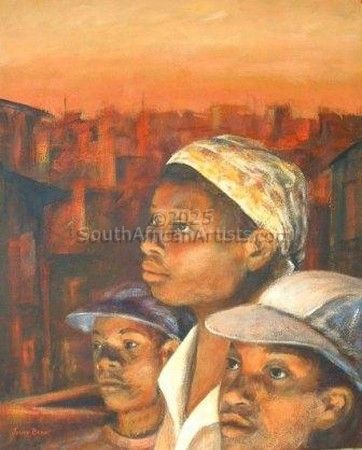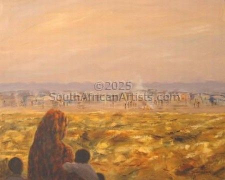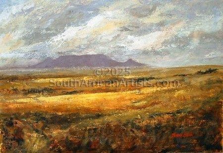 Jenny is based in Durbanville, Western Cape. Her paintings have mostly a Cape or African theme, using a limited palette of earthy colours.