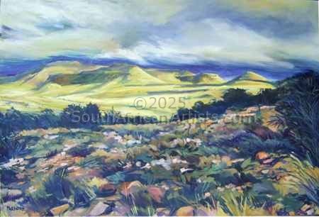 My life experience has been very varied. After 2 years at the Johannesburg School of Art (1978 & 1979) boredom set in and I spent six months working in the display department of a clothing chain. After that there was a brief foray into the world of advertising, which did not suit me at all, after which I successfully ( and lucratively ) free-lanced for 9 years. There was another brief period once more in a display department, but corporate life was not for me. In 1991 I moved to Graaff-Reinet and with my partner set up a business which was intended to not only generate income for us, but also to create jobs. After 8 hard years, during which we learned a lot but also lost a lot of money, we closed it down. This was followed by 5 years during which we owned and ran a very successful Bed & Breakfast and Restaurant which was sold in 2004. Since then I have had the freedom finally to devote time to my various creative interests. September 2004 saw the exhibition Hidden Colour which was concerned with Karoo Landscapes. This was followed by Life On Mars in 2005, a complete departure from the work of the previous year. I have also been writing articles for magazines and newspapers, drawing a cartoon strip, and doing logos and illustrations for various products. Price Range US$ 75-1,528 Exhibitions Karen McKerron Gallery, Johannesburg; Ibis Art Gallery, New Bethesda; National Arts Festival, Grahamstown 2005; Chocolat Gallery, Graaff-Reinet (on-going). Education Johannesburg College of Art (Wits Technicon) People who chose Stephen's work also chose work by: Find other: