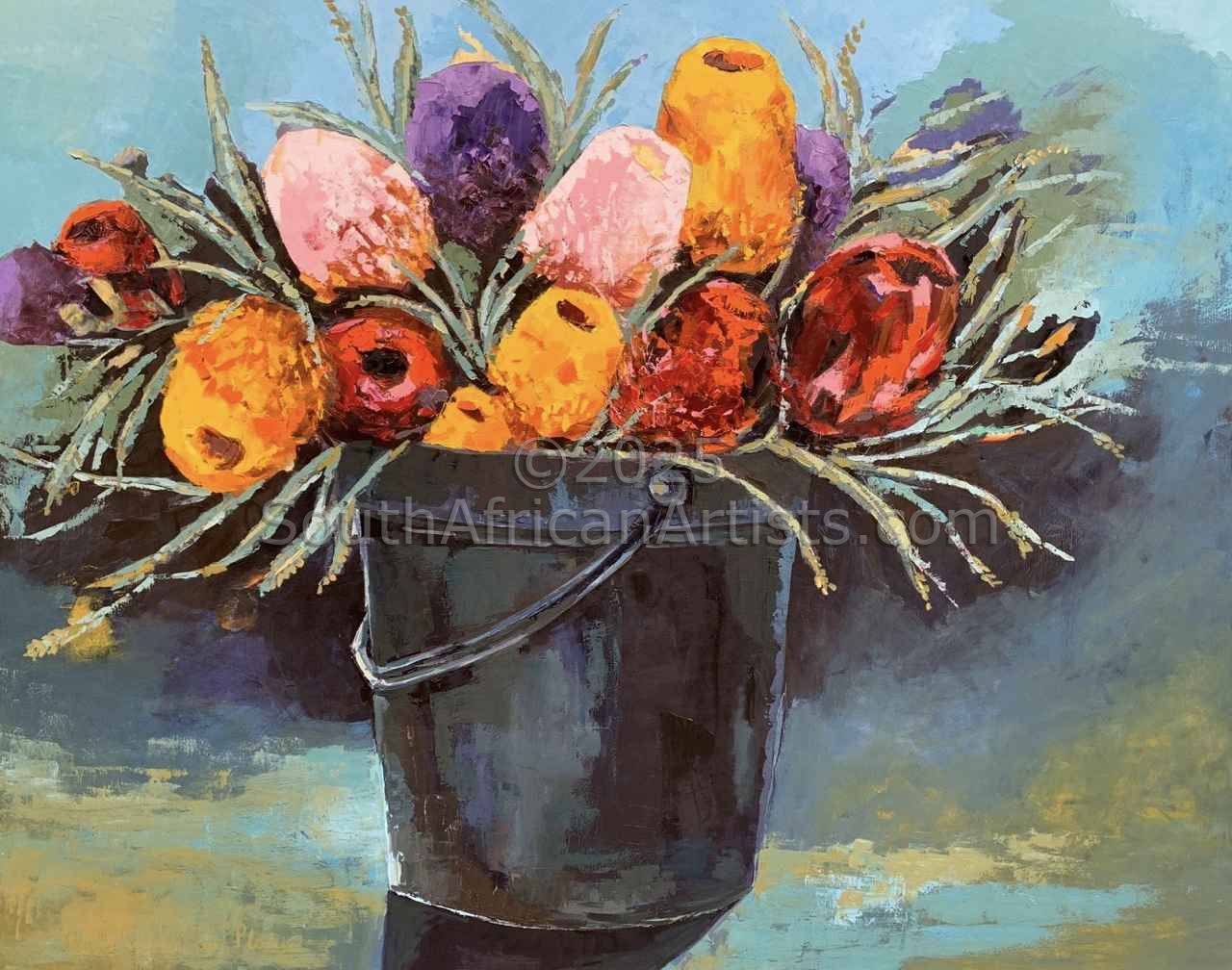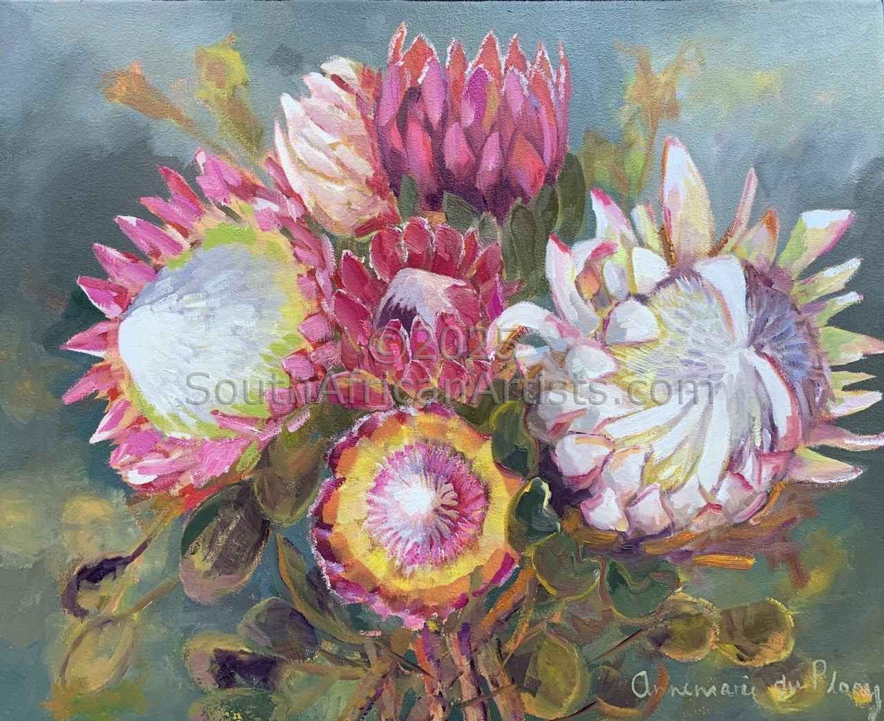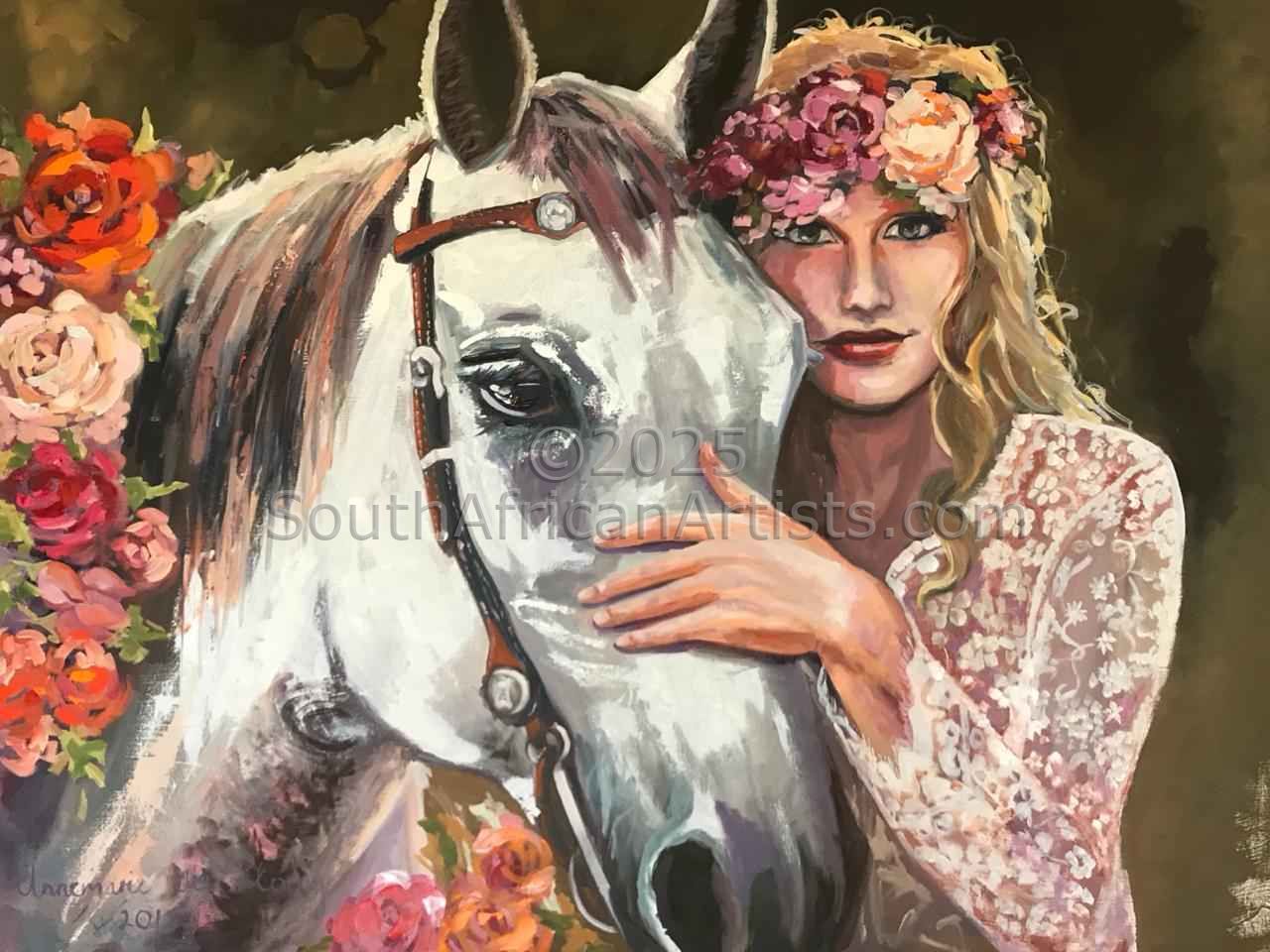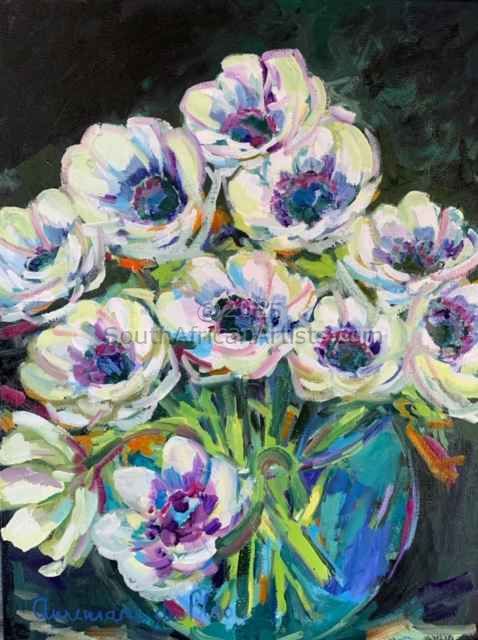 Studied HED Domestic Science at Potchefstroom University during which time she was introduced to the arts. Started painting in 1995 took art lessons over a period of 4 years from various artists in Mpumalanga namely : Melite Grobler, Belinda Wessels, Carel Maree and Boe v Zyl. Prefers working in oil as a medium.Views work as realistic, romantic and at times impressionistic and has a passion for romantic scenes with figures, flowers and fruit Price Range US$ 61-3,061 Exhibitions Took part in several successful solo and group exhibitions in Mpumalanga (Bethal and Secunda) .At present Bellini Gallery in Hermanus has the biggest collection of my work. Kanonkop wine estate exhibit some of my works at their gallery.Gallery 91 in Somerset West also exhibit some of my work. Education HED Domestic Science People who chose Annemarie's work also chose work by: Find other:
