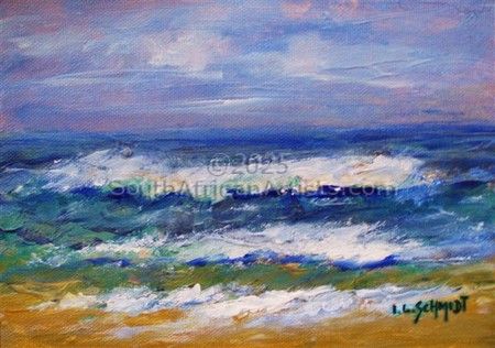 Ivy Schmidt, Born 6th February 1917 - died 27th November 2008. Always an individual - swimming upstream. Ivy never painted to please anyone but herself. She saw the world in her own hues. Crazy, brilliant, fiery sunrises over the Indian ocean. Taking 'mental photographs' of all her favourite images, Ivy would retire to her studio and paint like crazy, sometimes all through the night. Price Range US$ 46-1,567 Exhibitions Exhibitions in all the major cities of South Africa and "Rhodesia" now known as Zimbabwe. Education Johannesburg Tech (Art) Italian master 'Scarpo' People who chose Ivy's work also chose work by: Find other: