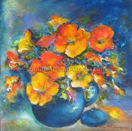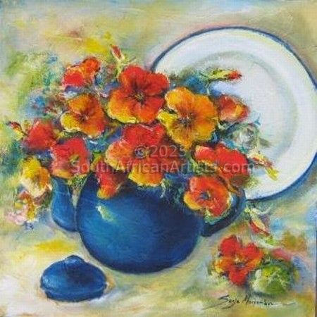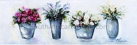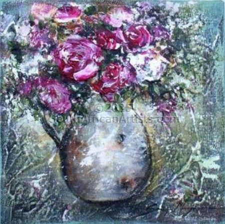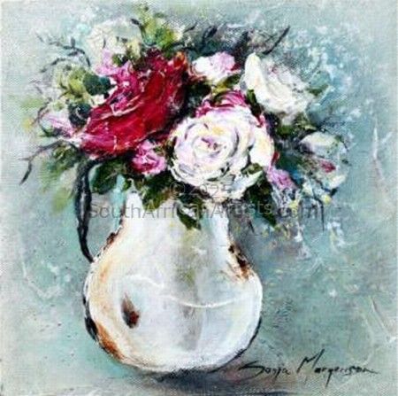 Art has always been Sonja's passion. As an 8 year old Sonja won her first art competition. Her inspiration comes deep within and her favourite subject.... flowers.... Happiness, love and life are portrayed in flowers from using a mixture of different colours to create a mood. Sonja is also inspired by nature, surroundings and by her loving and supportive husband, Ian and two boys, Michael and Joshua. Sonja believes art is a constant work in progress and a talant given by God. Price Range US$ 55-1,837 Exhibitions Sonja Margerison's artwork was selected for the 2012 South African Artist Diary as well as for the Select Diary for 2012, this diary will also be launched internationally towards the end of the year. Education Higher Education Dipl, Sales & Marketing Management People who chose Sonja's work also chose work by: Find other: