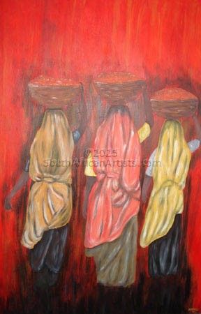My work has a distinctive Indian and South African flavor and influence as seen in my use of bright colours and diverse subject matter.