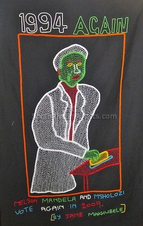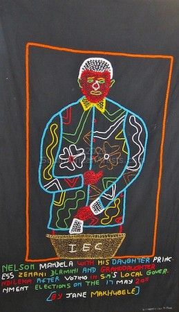 Billy Makhubele and his wife Jane Makhubele are a husband and wife team who design and make colourful art works based on the historic events which have occurred in South Africa. Billy designs the piece and Jane and his other wife, Jamina and their children make the artworks out of beads, pins, mirrors and other objects on cloth. Price Range US$ 184-816 People who chose Jane's work also chose work by: Find other: