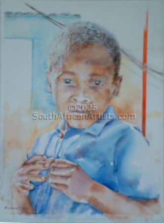 In 2000 Maggy moved to South Africa with her husband for business. They have settled in Swellendam and she is excited to include the African experience in her work. She wants to share her knowledge with others and teaches and paints now in the Morgenzon project in Swellendam. She loves to work on themes from the local township, to approach the people, to draw them from different angles and to encounter the real soul of beauty in poverty and the numerous contrasts in South Africa.