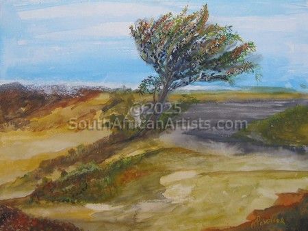 Inspiration: My inspiration for my work comes from small "Everyday Happenings", as well as from nature. I love the sea and trees, and do seascapes from the Port Edward area on the Natal South Coast. I usually make pencil sketches and take a back-up photograph, and then complete the painting in my studio. Although I started my professional painting career late in my life, I have already taken part in group exhibitions in Welkom and in Klerksdorp. My art teacher, mentor and good friend, Therese Grunow, a well known and accomplished South African water colour and miniature artist, has a very strong influence in my life and my work. She has opened up a world of beauty, colour and an appreciation of art for me.