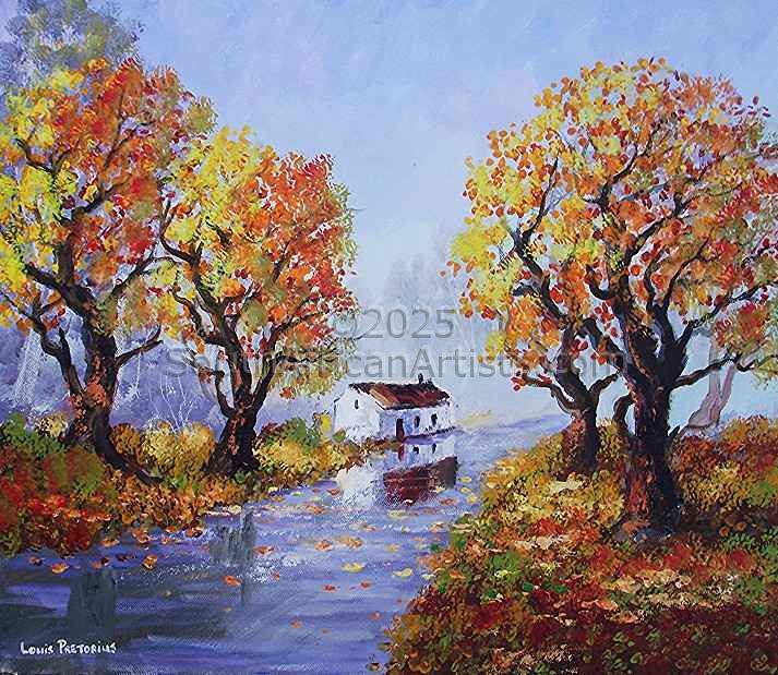 Louis Pretorius was born in Middelburg in the Karoo and grew up in Cape Town. He became a teacher in 1966 and started his art in 1971. For more than 30 years he has had many exhibitions in South Africa.Louis Pretorius is married to Emmie and since 1990 resides in Melkbosstrand. Louis has always found soul food in being creative - especially painting, which inspiration was strengthened when he spent some time to tour Europe and the Greek islands. Spending time in the museums and art galleries contributed to this ambition. He loves painting landscapes and is concerned with Man's abuse of Our World, so endeavours to capture the beauty of nature through his paintings. "Art is the best way to escape without leaving home...." Louis insight and passion for art is evident in his unique artworks which bring warmth, depth and beauty into a room.