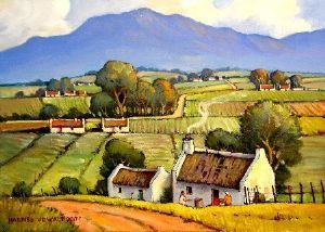 The idyllic appearance of the two little houses in the foreground and the people living there, inspired me to capture this scene on canvas.