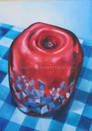 Red Apple, Blue Chequered Tablecloth