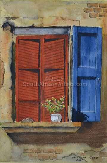Window with Red Shutters