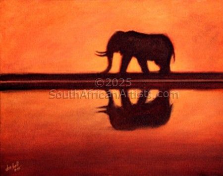 Elephant Sunset Reflection