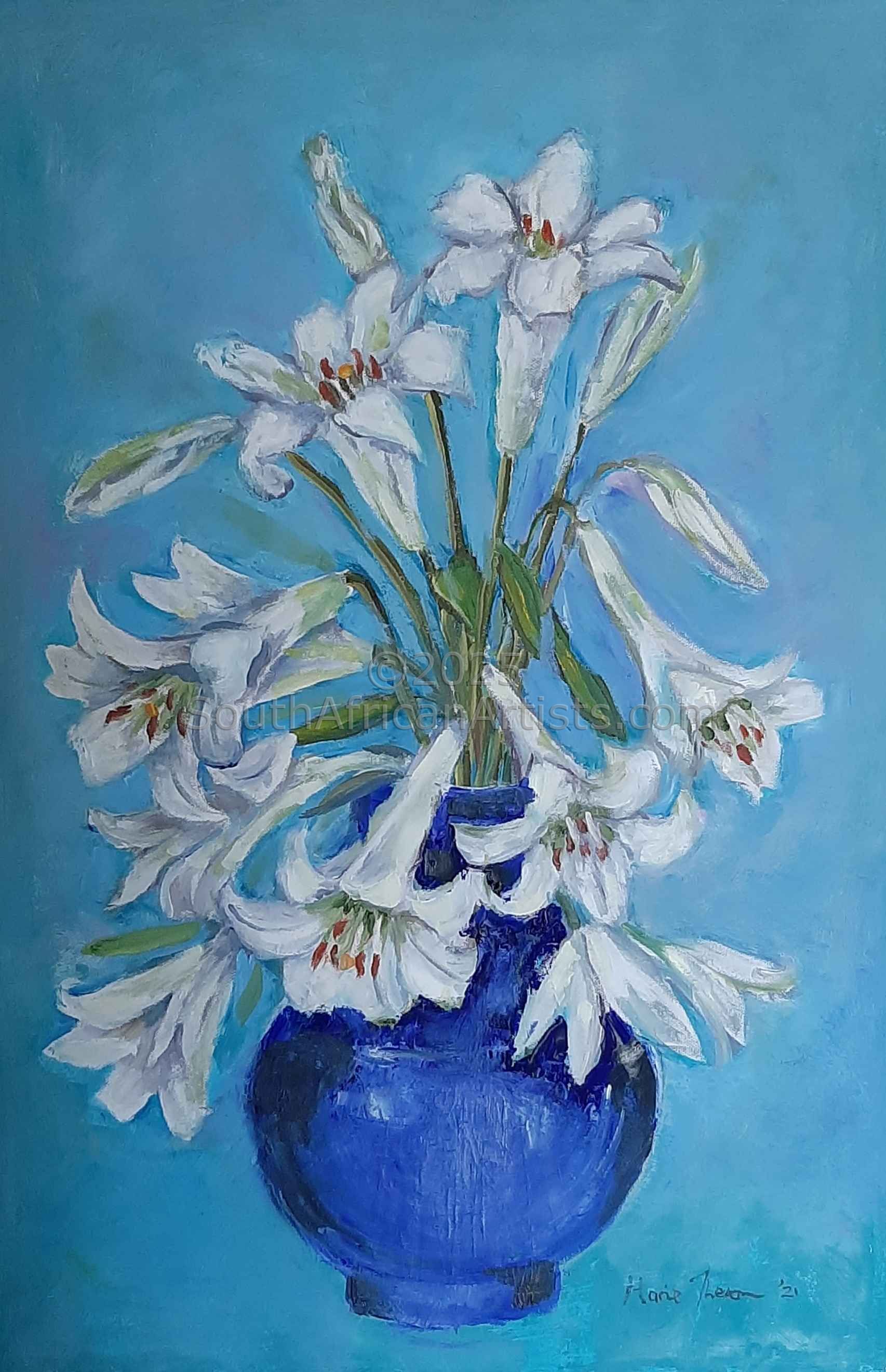 St Joseph Lilies in a Blue Vase