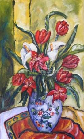 Tulips and Arums in Chinese Vase