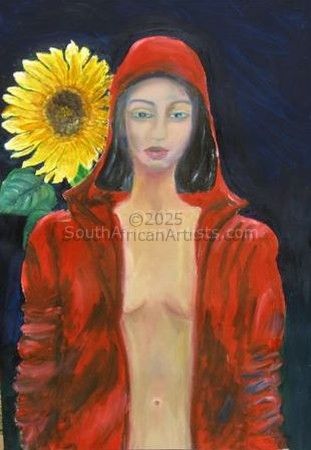 Nude With Sunflower and Red Coat