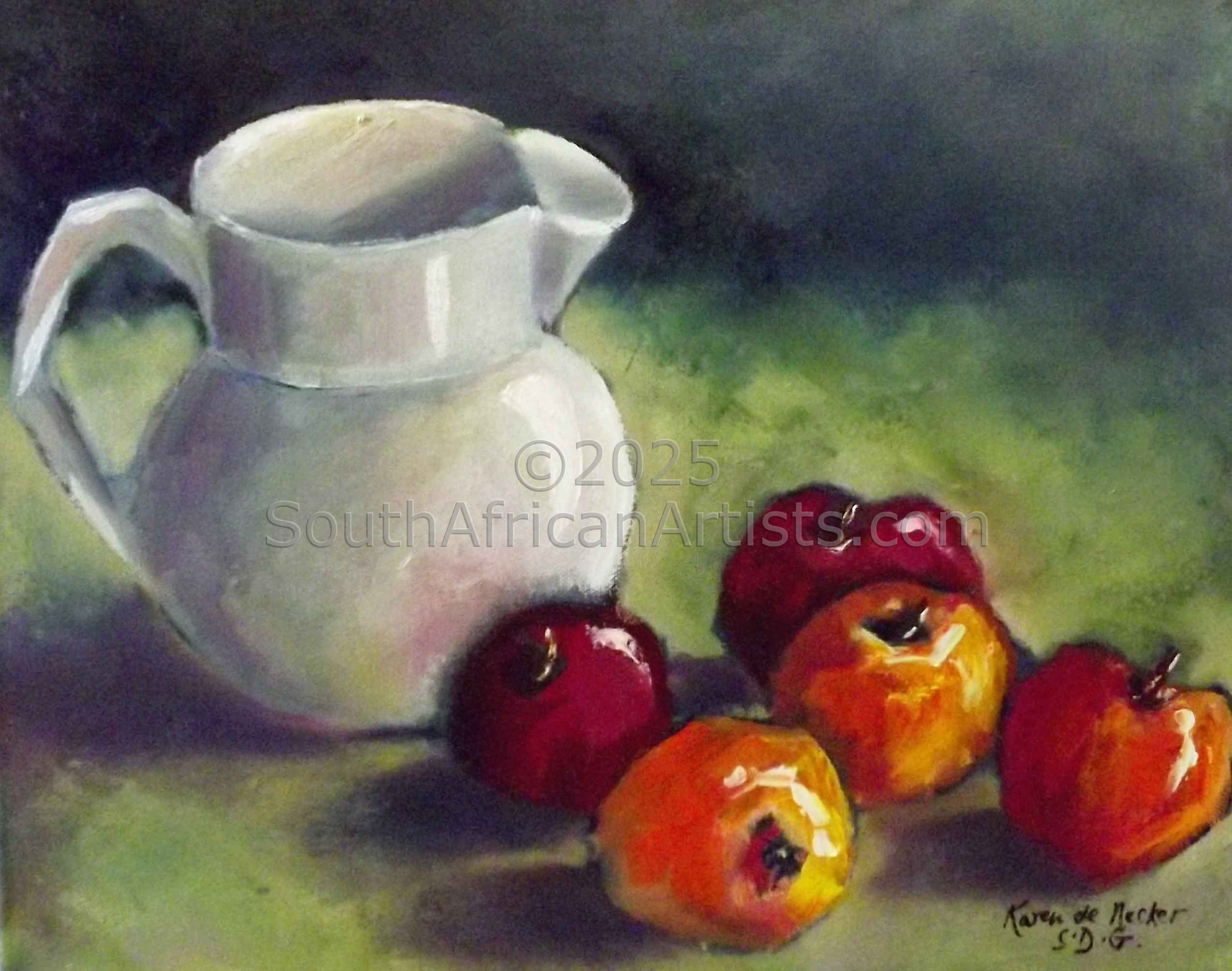 I am inspired by ordinary things all around me. Flowers, nature, shapes and patterns, people........... Price Range US$ 89-206 Exhibitions I was part of an art group in Phalaborwa under Magdaleen Heyns. Then in Pretoria under very talented Elmarie Eksteen. I love art markets and take part now and then. The rest is private and online sales. Education Private education People who chose Karen's work also chose work by: Find other: