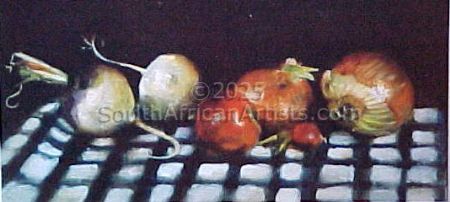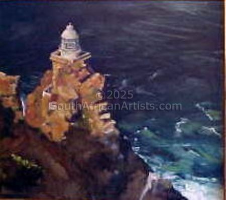 She concentrates on traditional painting and drawing, but with contemporary ideas. Her work is versatile, truthful and warm. Landscapes, very often depicting contemporary every day South African life, portrait commissions, still life and maritime paintings. Her interests include photography and botanical art and conservation amongst other things. she has a great love for reading and is passionate about collecting art books. A passion which was instilled in her as a child by her aunt who was Professor of Art and Languages at University Leyden. She works from both her studio in Rondebosch and her studio on her conservation farm in the Karoo.