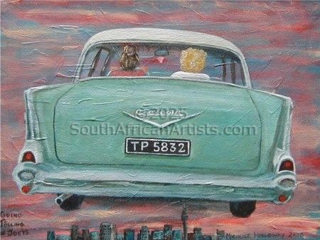 About Michelle In the joyous spirit of the naive genre, Michelle records daily life in acrylics on canvas, often with a nostalgic twist. She creates paintings of classic cars, favourite people and animals,and city and country vistas that make you smile. Her work may be found in private collections throughout South Africa and also in the United Kingdom, Holland, Germany, Sweden and the United States and Canada. Price Range US$ 100-903 Exhibitions First solo exhibition Greyton, 2000 Education (No formal art education) BA hons degree in English literature People who chose Michelle's work also chose work by: Find other: