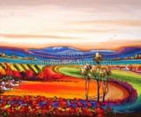 Nature features heavily in her work and her closeness and understanding of her subject's nuances is immediately obvious. Using large colourful canvasses she achieves a 3-D effect by 'sculpting' the paint in a raised form to create unique and enduring art. Not confined to abstract or more realistic expressionist paintings, it is her skill as a colourist and her application of shape, form, light and value that sets her apart.