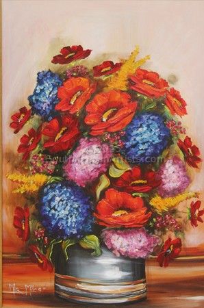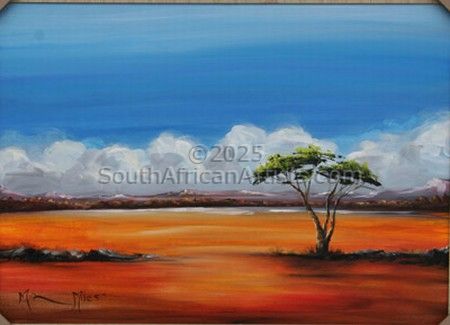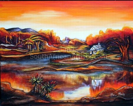 Her long brush strokes mark her as an expressionist therefore her work can be summed up by the following quote from Kasimer Edschmid "The Expressionist does not look, he sees" The expressionist MIQRA ORMANDE MILES or better known as Miq Miles was born on the 8th of June 1957 in Pietersburg, now known as Polokwane in the Northern Province of South Africa.
