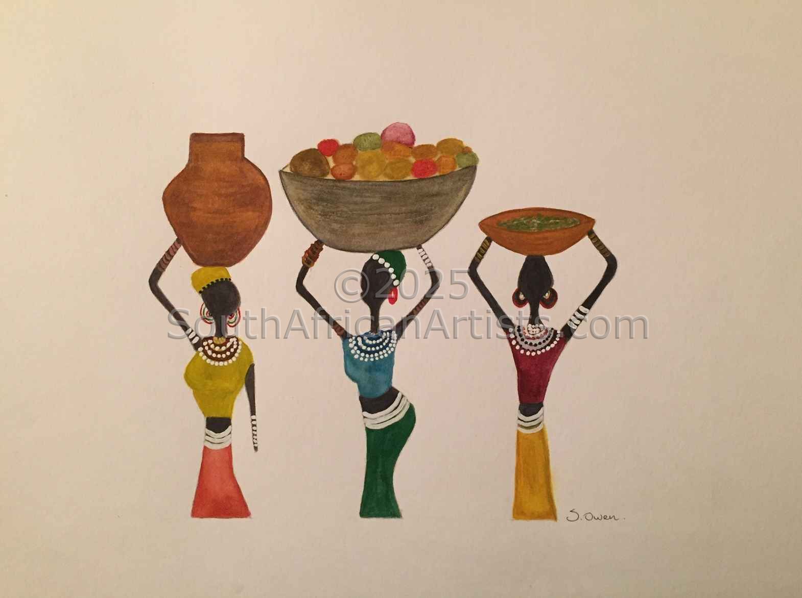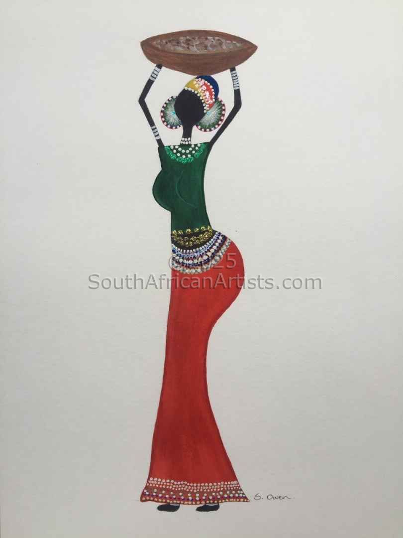 I am drawn and inspired by everything around me, the colours and textures, especially bright and lively colours. I enjoy painting flowers as well as Fisherman Cottages, guinea-fowls and African traditional art. I am now enjoying Naive Art and the fantasy world that goes into a painting. Some of my paintings are design- orientated which I find very rewarding. This can be seen in the painting "Guinea Fowls with Feathers and Beads" which is also beaded and to which I have added guinea-fowl feathers. I also enjoy bead work and therefore occasionally incorporate beads in my paintings (Mixed Media). Price Range US$ 45-1,593 Exhibitions Winter Life Group Exhibition - Fish Hoek. Education Qualified Fabric Painting Artist & Liquid Embroidery Instructor. People who chose Sonya's work also chose work by: Find other: