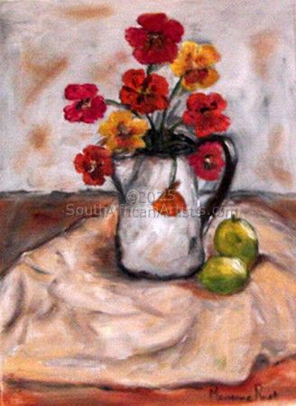 Marianne Rust (Brewis) born in the Ceres valley in the Western Cape, South Africa. She grew up in Cape Peninsula, surrounded by spectacular landscapes mountain and sea.. which gave her the appreciation for the beauty of nature.