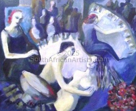 Painting a picture is like giving birth to a soul mate. whatever I paint is personal and every painting a learning process. Energy,sensitivity,emotion,colour,composition,texture and brushstrokes all play a part. Sometimes it amuses and sometimes it amazes but always satisfies. Price Range US$ 71-723 Exhibitions group exibitions: Mosselbay,Oudshoorn,Pretoria,Bloemfontein,George,Rustenburg, Port Elizabeth,Great Brak River. Education Bert du plooy, Kathryn van Schalkwyk, Chris Spies, Spies venter. People who chose Elaine's work also chose work by: Find other: