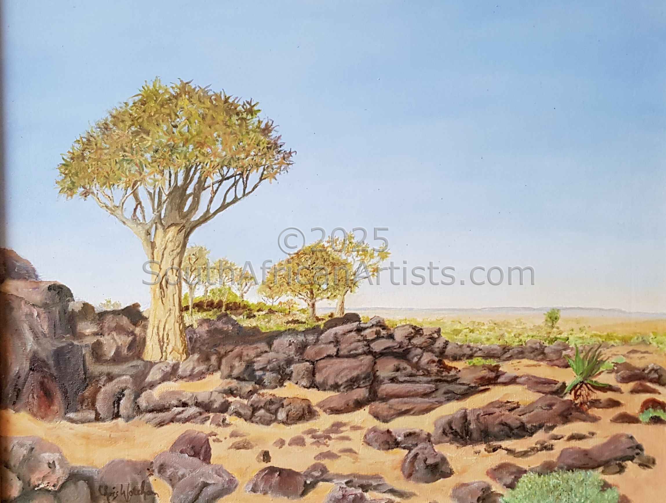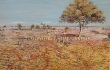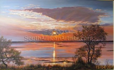 Chris paints in oil, scenes of Landscape, and Wild Life, capturing moments of sunsets, and scenes with animals being there for a moment, which is why he set his Website up as mymomentsintime He paints in washes of Oil colour, building up Colour, to give life to his paintings and a three dimensional feel and a feel of real depth and colour perspective. Price Range US$ 209-4,179 Exhibitions Chris has exhibited successfully Privately, at Art in the Park (Pmb.) Art at Zoo Lake, Norscott Manor (Bryanston, Jhb.), Aardklop (Potchefstroom, Hilton Arts Fest. Innibos (Nelspruit), Jan Smuts House, Walter Sisulu Botanical Garden. and other Venues. Chris has his own small Gallery on his Farm in Midrand and sold to people from UK, Germany, Sweden, Switzerland, Australia, USA and India. Education Cedara 2 yr. Agricultural Dip. (1964) People who chose Chris's work also chose work by: Find other:
