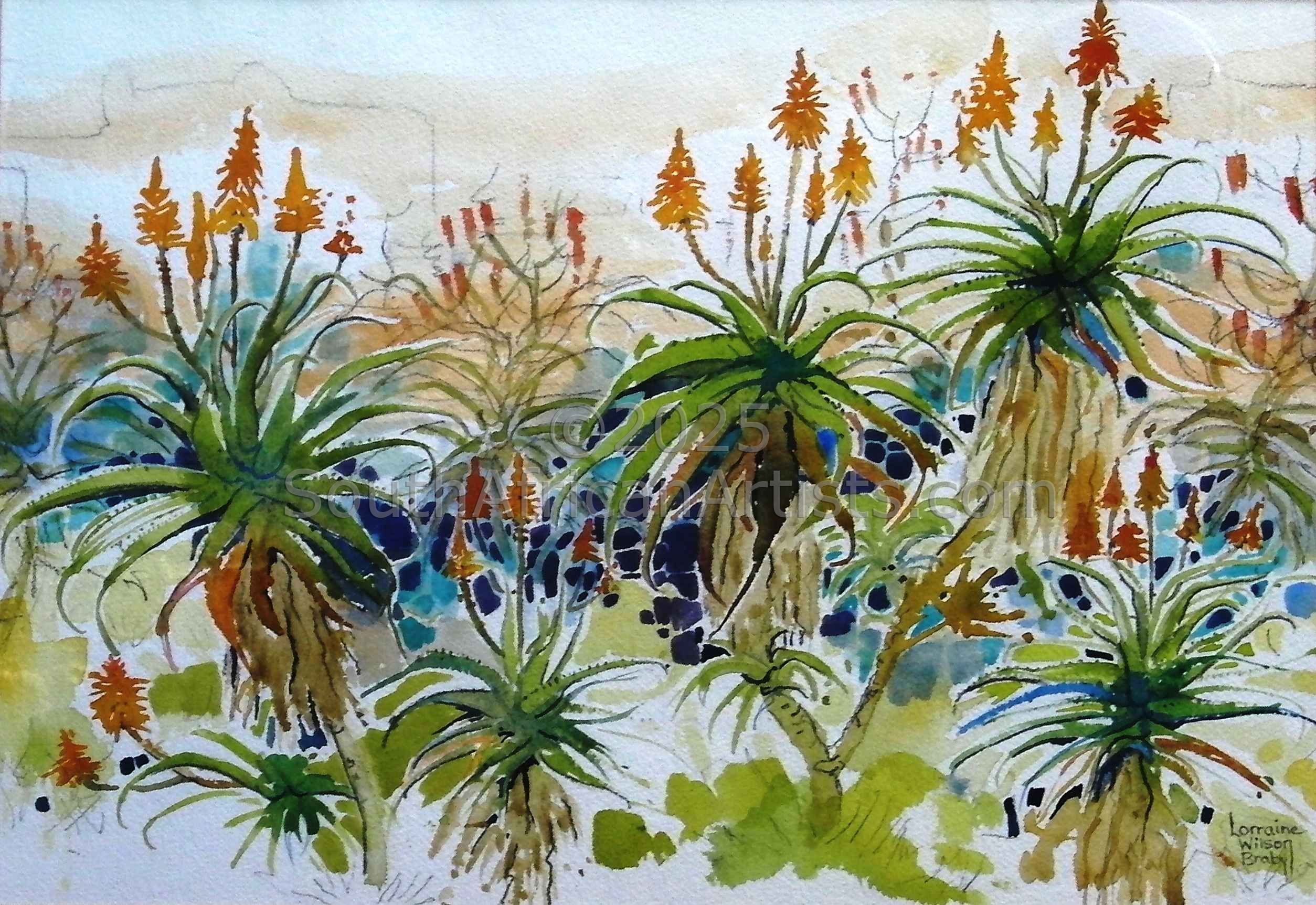 Lorraine has been an associate of the Watercolour Society of SA since 1981 and has exhibited throughout SA and in London through the Society. She has taught pottery in her studio to adults and children for many years, but has also held watercolour workshops in KZN and the Eastern Cape.